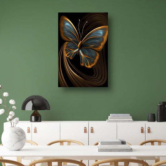 Abstracte Vlinder in Gouden Schittering canvas met baklijst