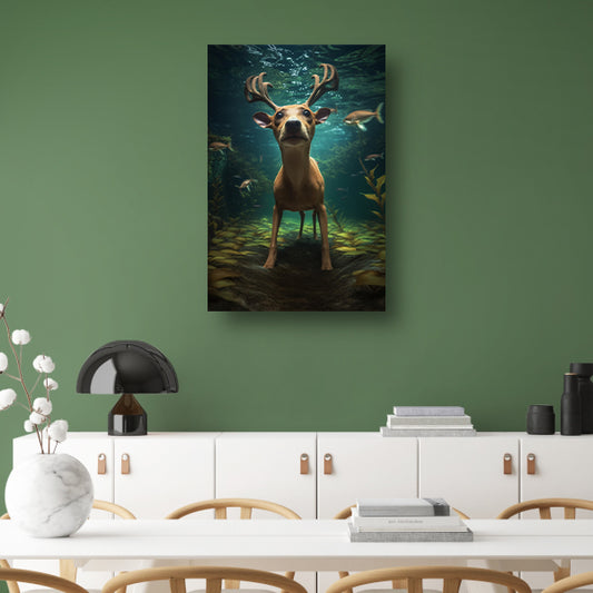 Hert zwemt onder water in surrealistische droom canvas met baklijst