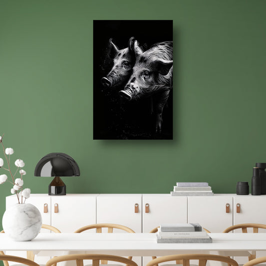 Intense blikken van zwart-wit varkens canvas met baklijst