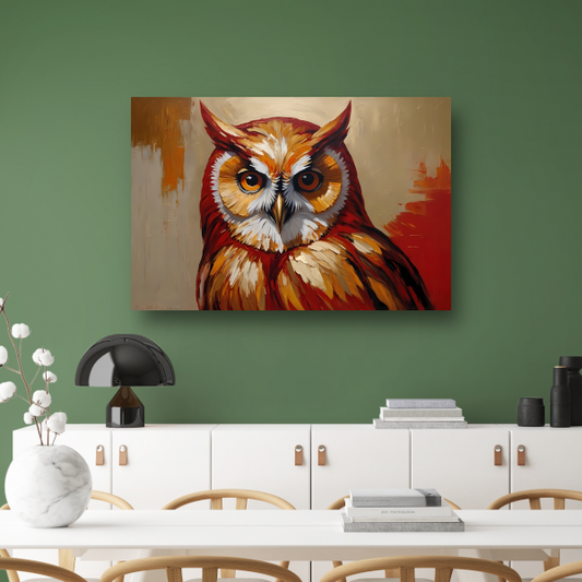 Impressionistische Uil in Goud en Roodtinten canvas met baklijst