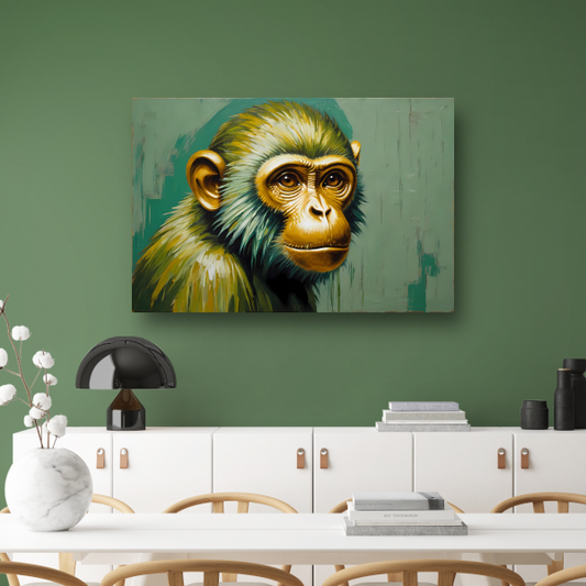 Expressieve Digitale Aap met Gouden Glans canvas met baklijst