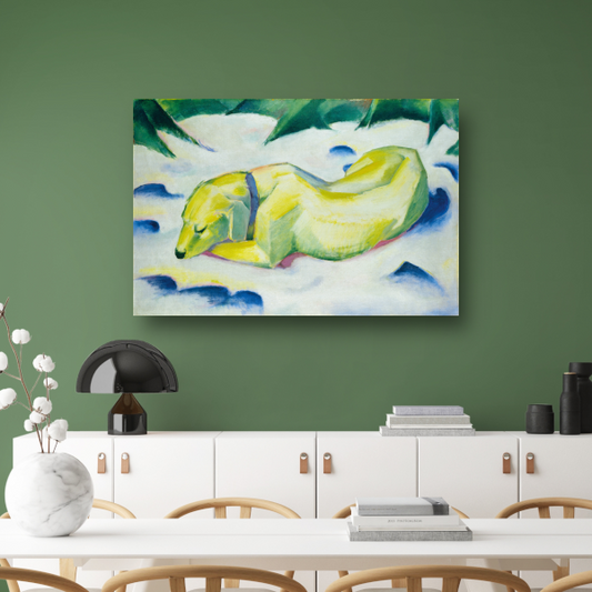 Liggende hond in de sneeuw - Franz Marc canvas met baklijst