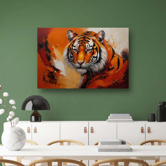Oranjerood Schilderij van een Majestueuze Tijger canvas met baklijst