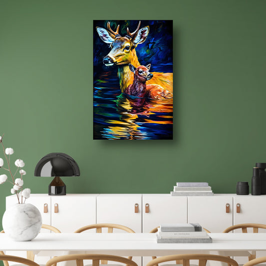 Moederhert en fawn in ochtendgloren canvas met baklijst