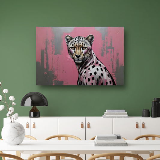 Intens Roze Luipaard in Moderne Kunst canvas met baklijst