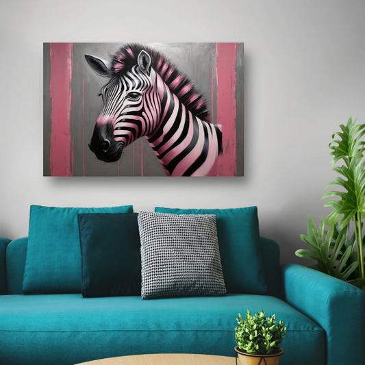 Moderne zebra met roze strepen schilderij canvas met baklijst