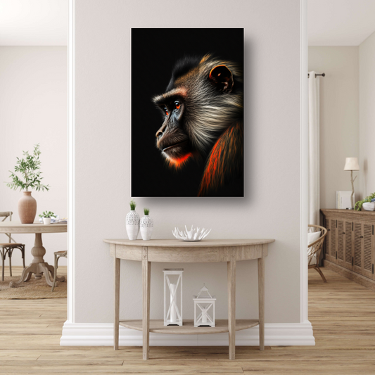 Reflecterende Aap in Schaduw en Licht canvas met baklijst