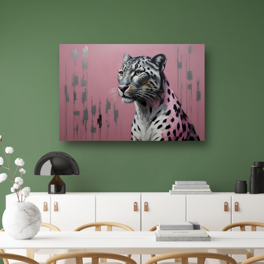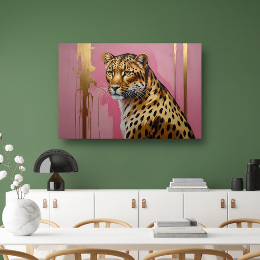 Majestueus Luipaard op Roze Achtergrond canvas met baklijst
