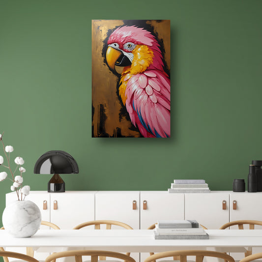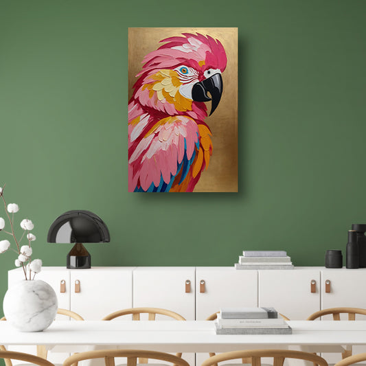Impressionistische Papegaai in Goud en Roze canvas met baklijst