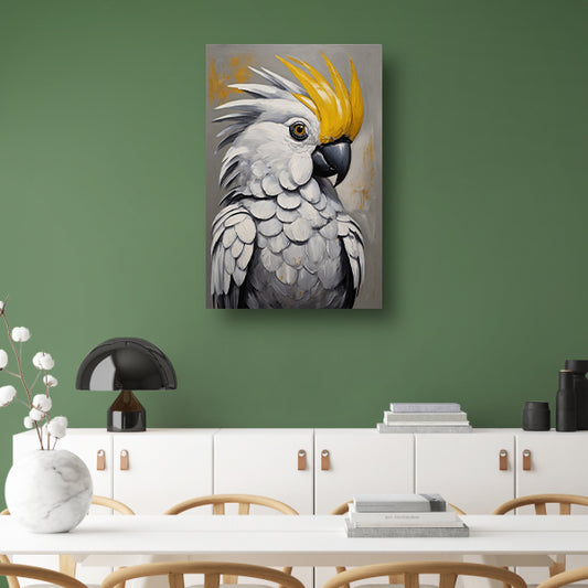 Majestueuze Kaketoepapegaai in Olieverf canvas met baklijst