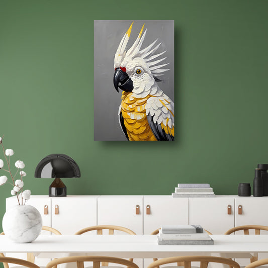 Elegante Geelkuifkaketoe in Moderne Kunst canvas met baklijst