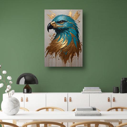 Abstracte Turkoois en Gouden Adelaar canvas met baklijst