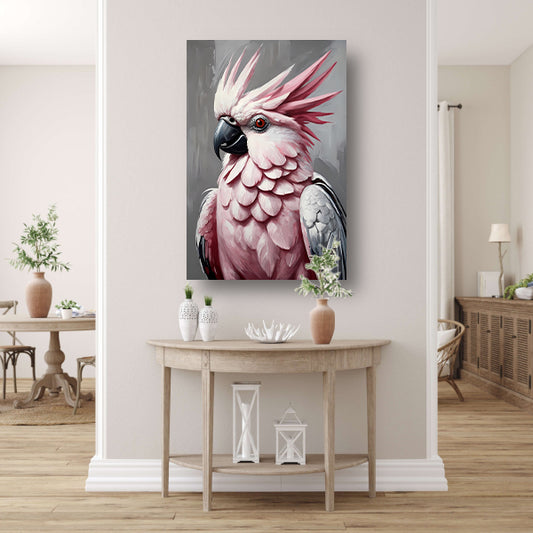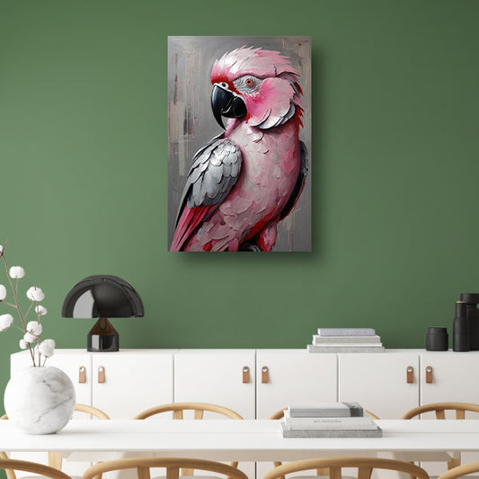Roze papegaai modern realistisch olieverfportret canvas met baklijst