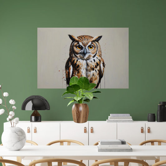 Intens Oogcontact met een Majestueuze Uil canvas met baklijst
