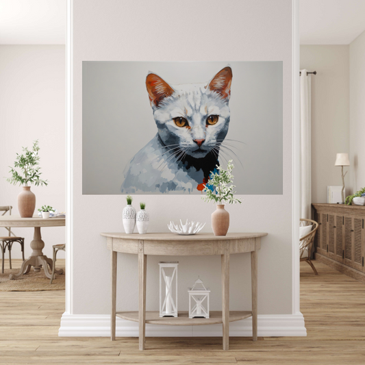 Modern Minimalistisch Portret van een Kat canvas met baklijst