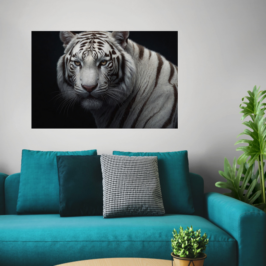 Stille Gaze van de Witte Tijger canvas met baklijst