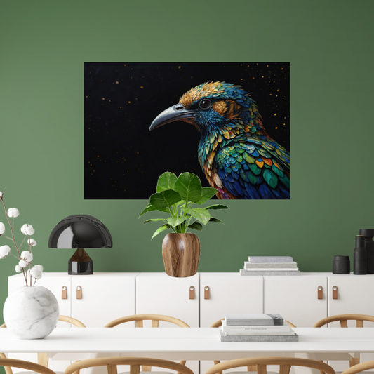 De Verborgen Dieptes van een Kleurrijke Vogel canvas met baklijst