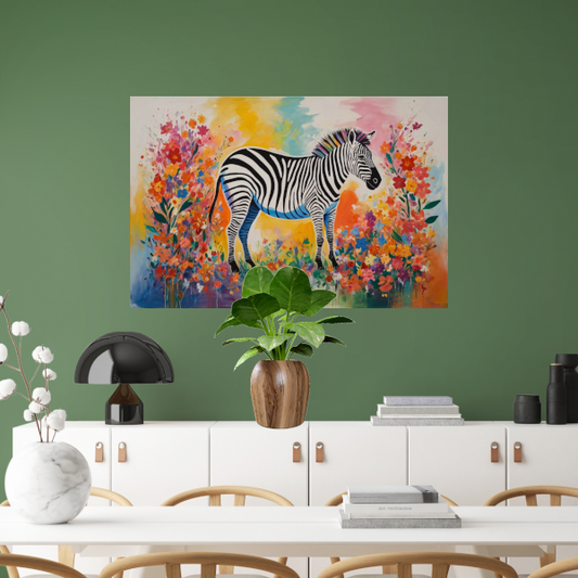 Zebra in Bloeiend Kleurrijk Bloemenparadijs canvas met baklijst
