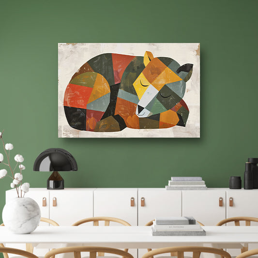Abstracte slapende beer in geometrische vormen poster