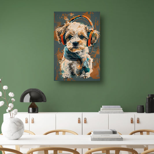 Portret van een Hond met Koptelefoon poster