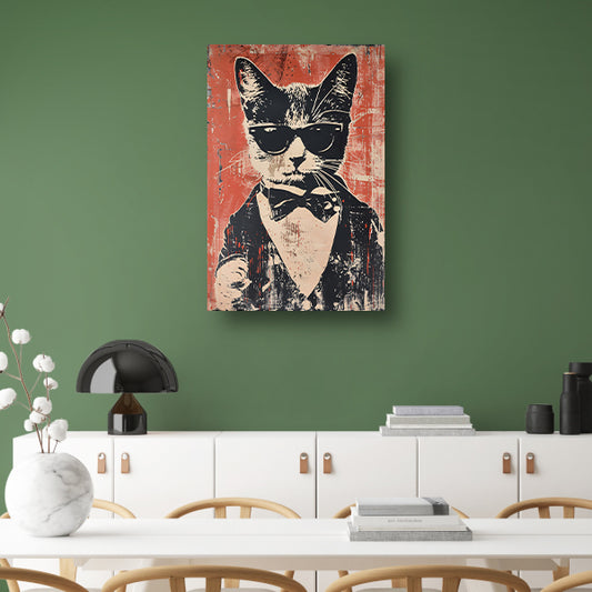 Zwart-witte kat met zonnebril en vlinderdas poster