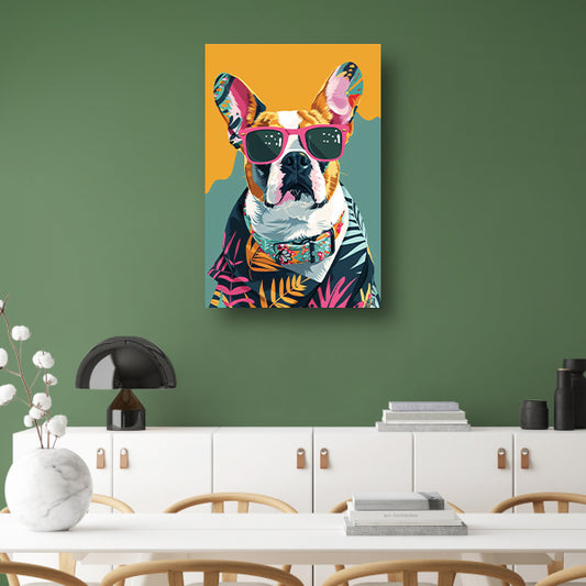 Franse Bulldog met Zonnebril en Hawaïhemd poster