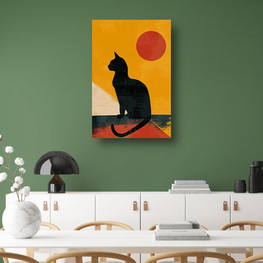 Zwarte Kat in Abstract Zonsondergang poster
