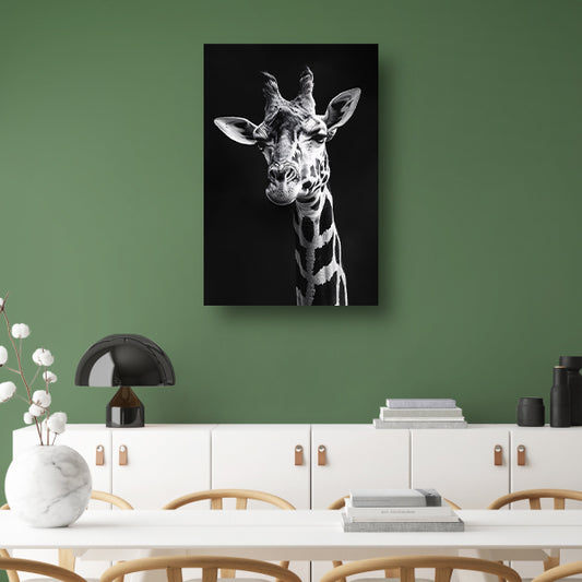 Zwart-wit portret van een giraffe poster