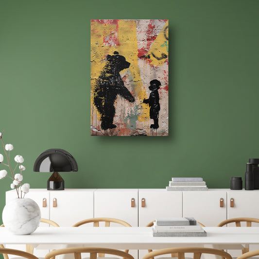 Zwart-wit street art beer en kind poster