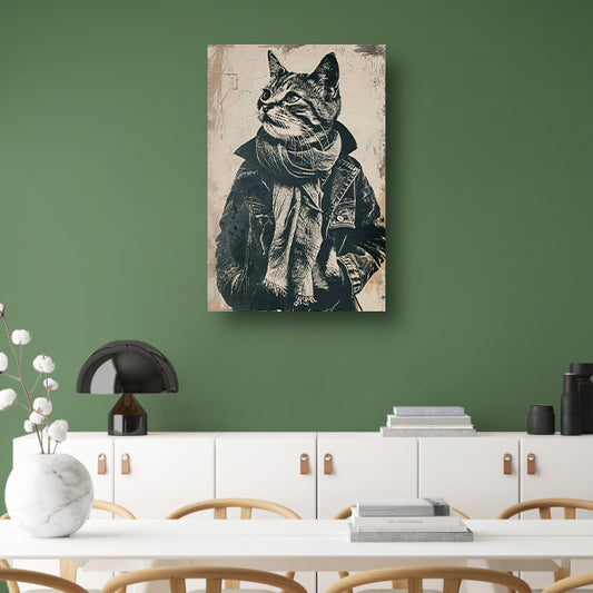 Zwart-wit portret van een kat in een jas poster