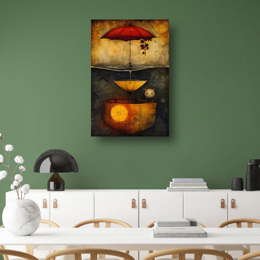 Rode Paraplu, Omgekeerde Gele Paraplu en Kat poster