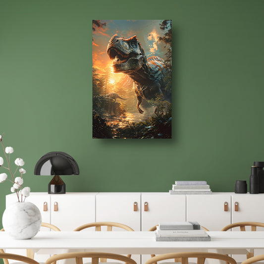 Machtige Tyrannosaurus Rex in zonsondergang poster