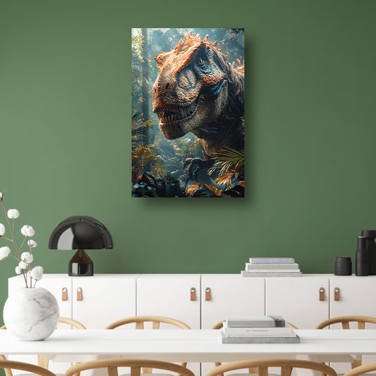 Portret van een majestueuze dinosaurus in het oerwoud poster