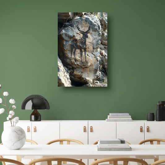 Minimalistisch Kunstwerk van Zwart-Wit Hert op Steen poster
