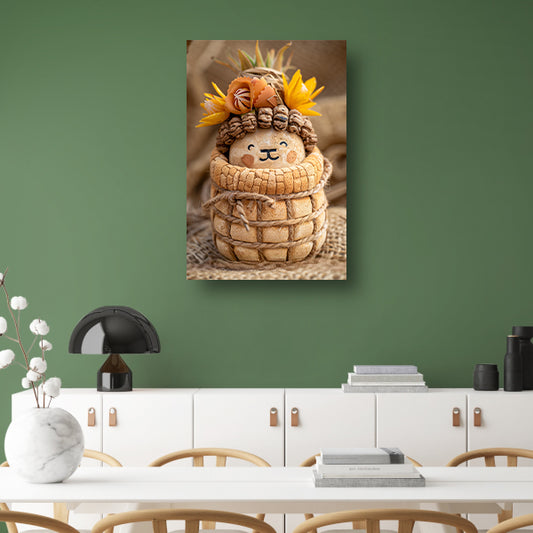 Handgemaakt beeld van leeuw met bloemenkroon poster
