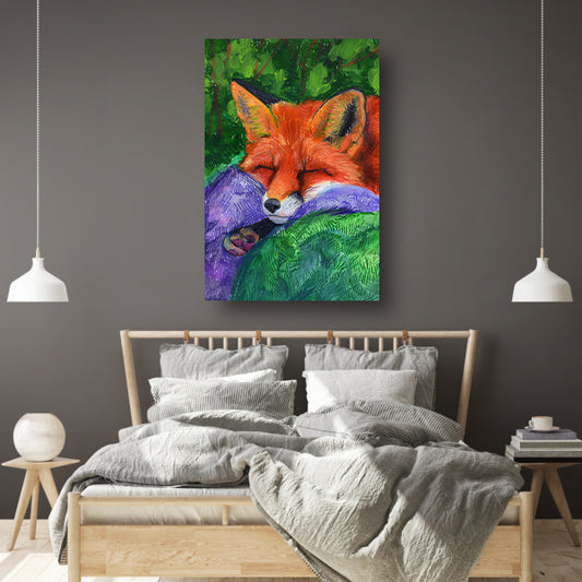 Slapende vos in kleurrijk bos schilderij canvas