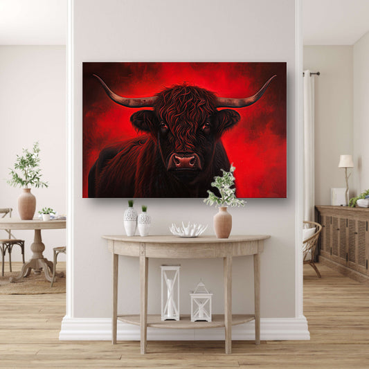 Majestueuze Schotse hooglander met vurige achtergrond poster