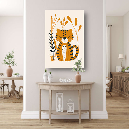 Minimalistisch tijgerontwerp met planten canvas
