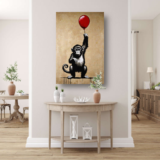 Bruine beer houdt een glanzende rode ballon vast canvas