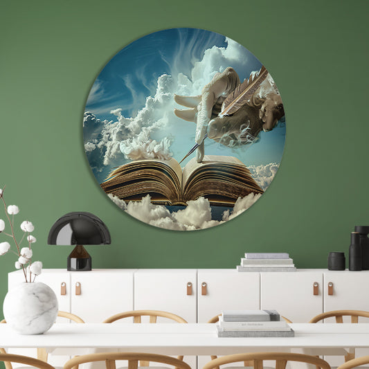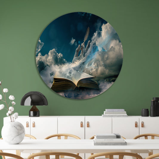 De Hand, het Boek, en de Wolken aluminium muurcirkel