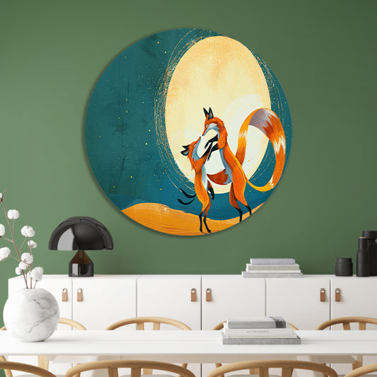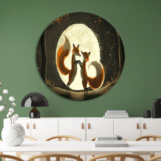 Dansende Vossen Onder de Maan aluminium muurcirkel