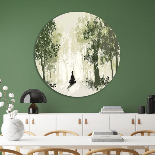 Meditatie in een bosrijke omgeving aluminium muurcirkel