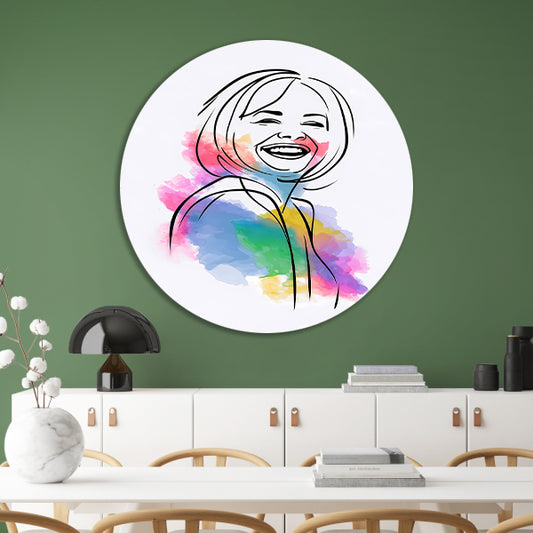 Een spectrum van vreugde: Lachend vrouwenportret aluminium muurcirkel