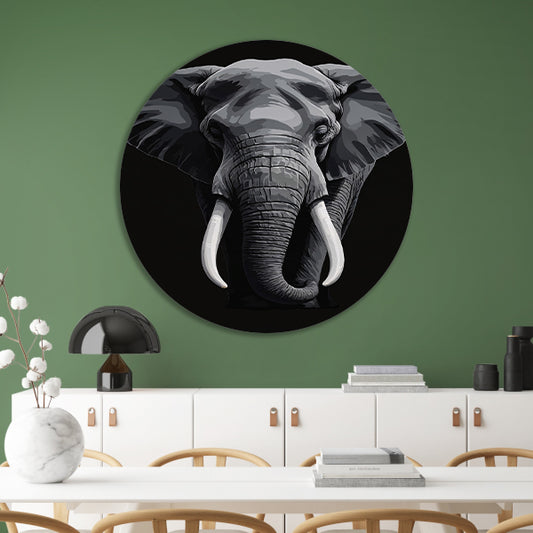 Portret van een olifant in zwart-wit aluminium muurcirkel