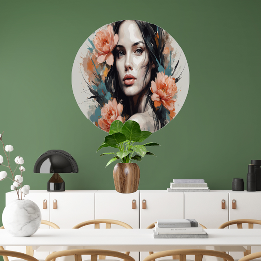 Stille Kracht in Bloei - Een Modern Portret aluminium muurcirkel