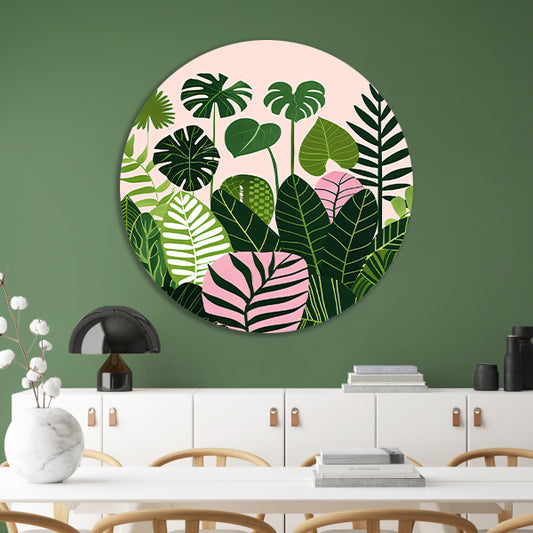 Kleurrijke digitale kunst van bladeren en planten aluminium muurcirkel