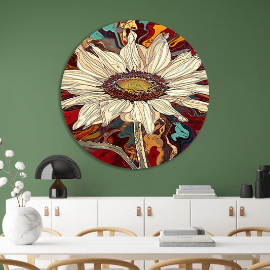 Kleurrijke zonnebloem met psychedelische achtergrond aluminium muurcirkel