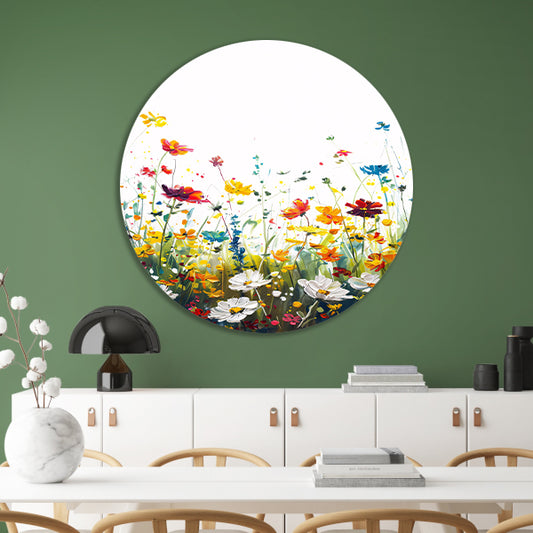 Impressionistisch schilderij van kleurrijk bloemenveld aluminium muurcirkel