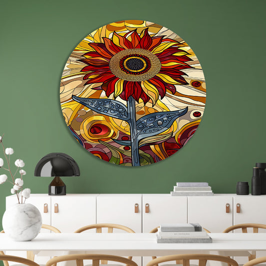 Kleurrijke digitale zonnebloem kunst schilderij aluminium muurcirkel
