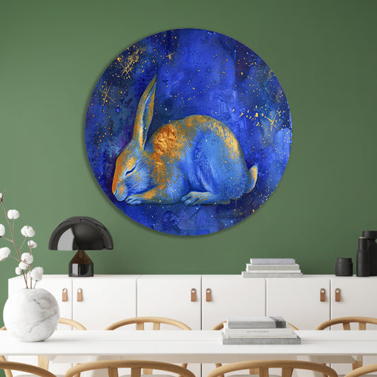 Dromerig konijn onder sterrenhemel schilderij aluminium muurcirkel